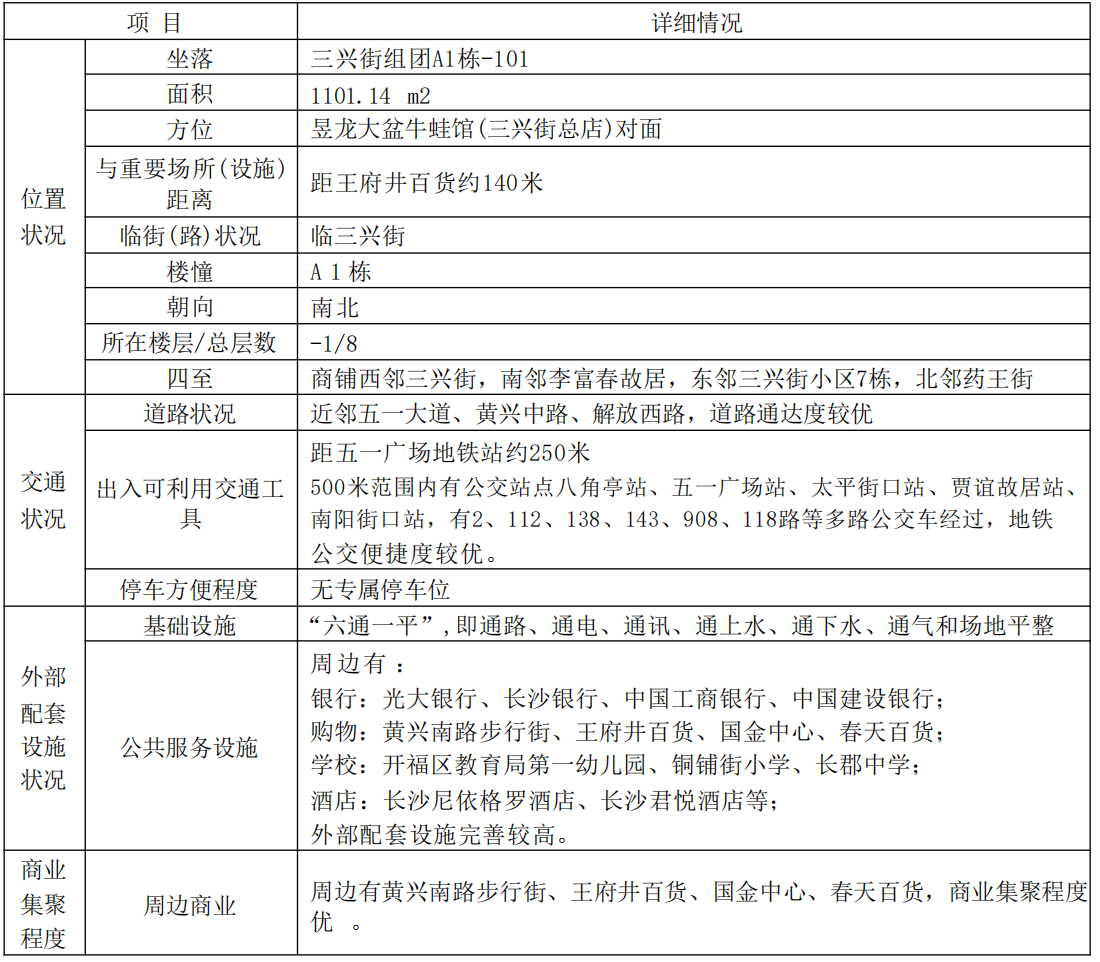 一、招商標(biāo)的介紹: 本次招商項(xiàng)目位于五一廣場(chǎng)三興街,距離五一廣場(chǎng)地鐵站僅160米,目前處于在租狀態(tài),入手即可收益,同等條件下,原承租人享有優(yōu)先競(jìng)拍權(quán)。 本次招商概況如下: 1.B商場(chǎng)006棟201面積742.09㎡,競(jìng)拍起始價(jià)為13680元/㎡。 2.A1棟-101面積1101.14㎡,競(jìng)拍起始價(jià)為6840元/㎡。 二、招商標(biāo)的位置示意圖