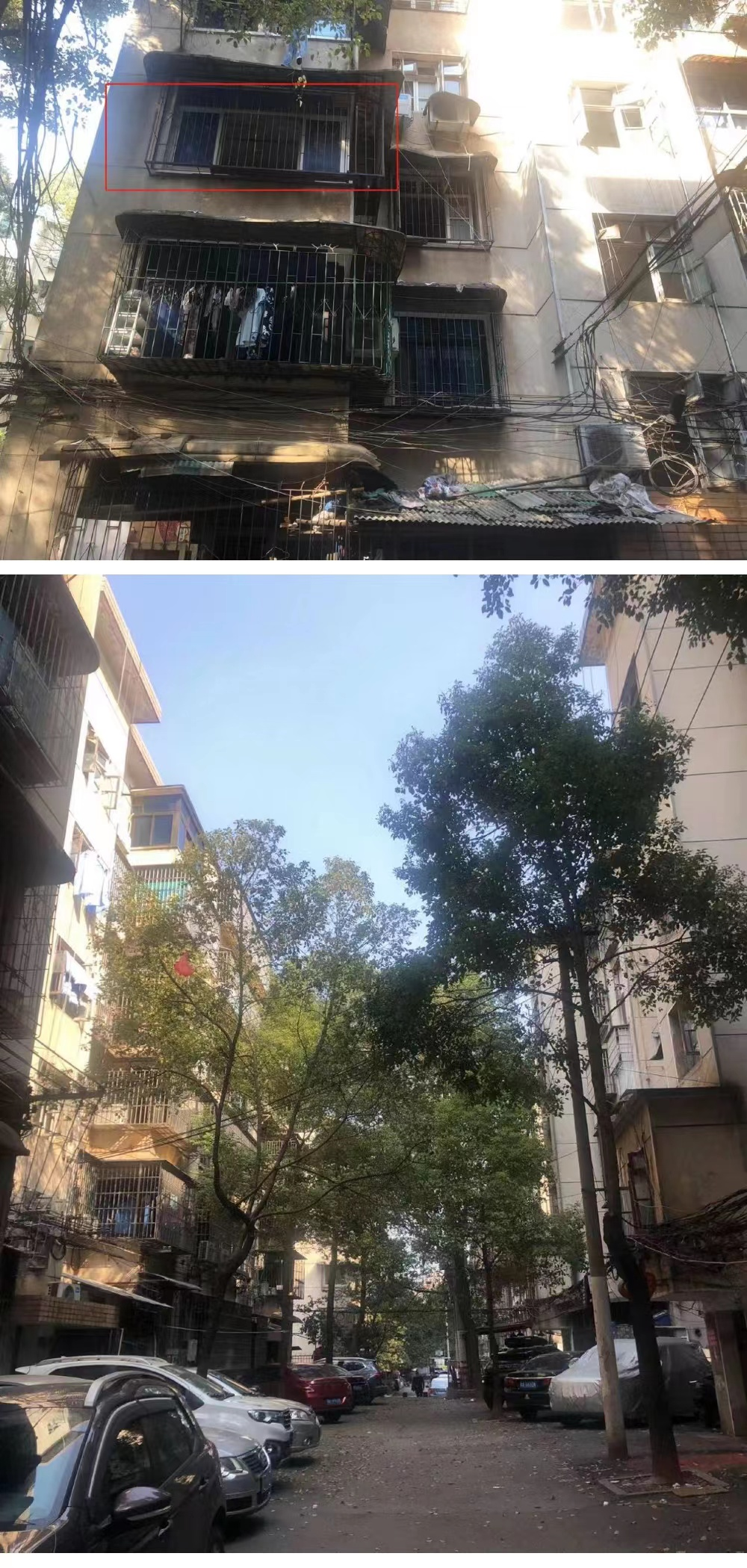 (上圖:紅線內(nèi)為房屋所在層/下圖:小區(qū)環(huán)境)
