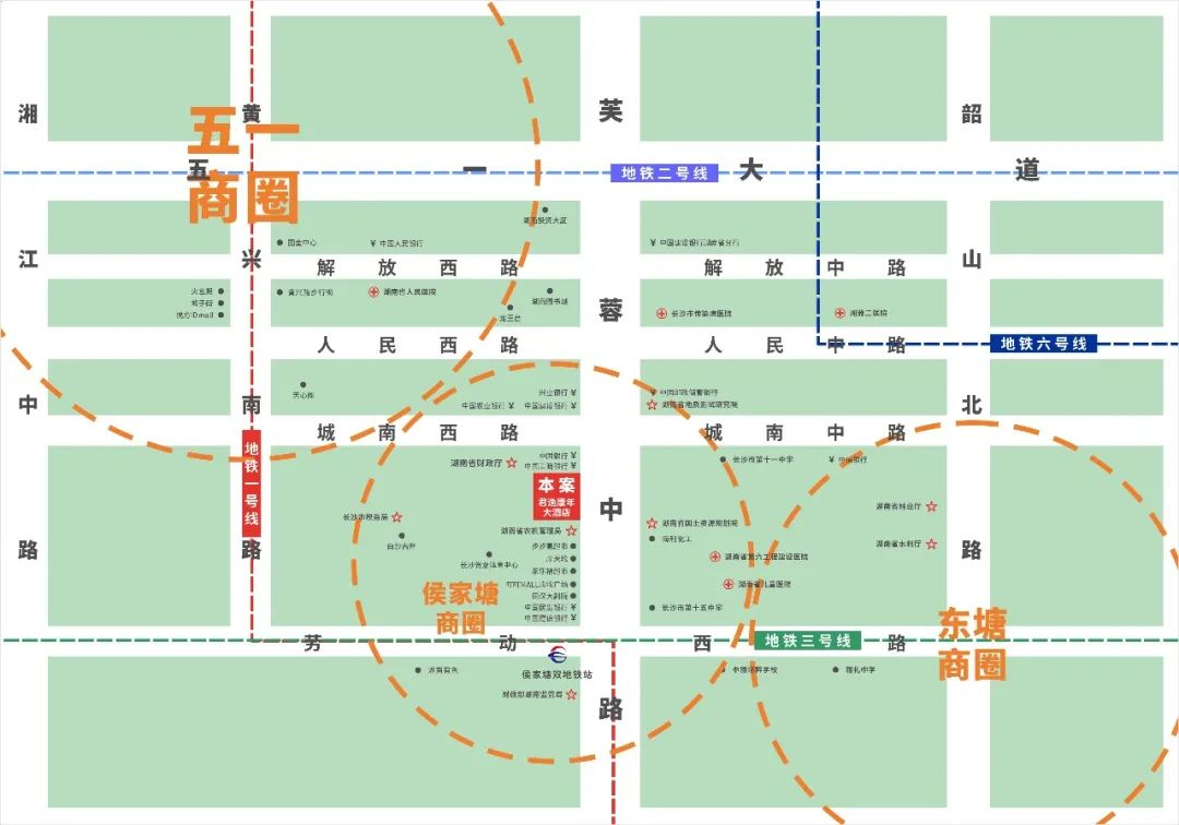 二、完美配套 1.商貿(mào)繁華,經(jīng)濟(jì)中心。酒店地處芙蓉中路CBD繁華地段,車行至長(zhǎng)沙高鐵站25分鐘,至長(zhǎng)沙火車站10余分鐘,至黃花機(jī)場(chǎng)40分鐘。距離地鐵1號(hào)線與3號(hào)線雙地鐵侯家塘站900米,步行10余分鐘;距離地鐵6號(hào)線窯嶺湘雅二醫(yī)院站1100米。眾多公交線路途經(jīng)小林子沖公交站,距離酒店僅30米。