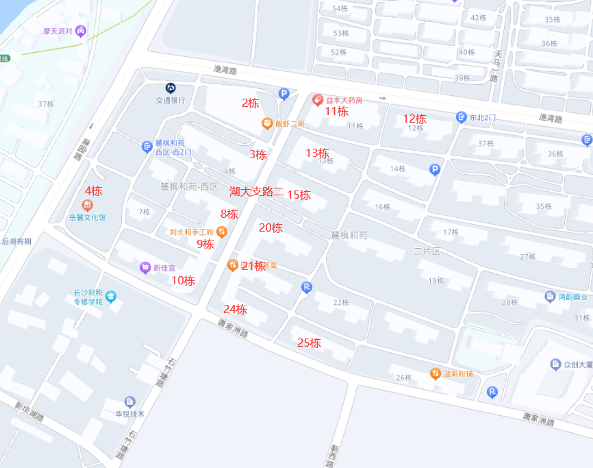 麓楓和苑2號棟項目位于麻園路以東、天馬路以南、瀟湘南路以西、湖大支路一以北,目前已引進“靚蝦二哥、湖大出版社、稅務局”等企業(yè)、單位入駐。