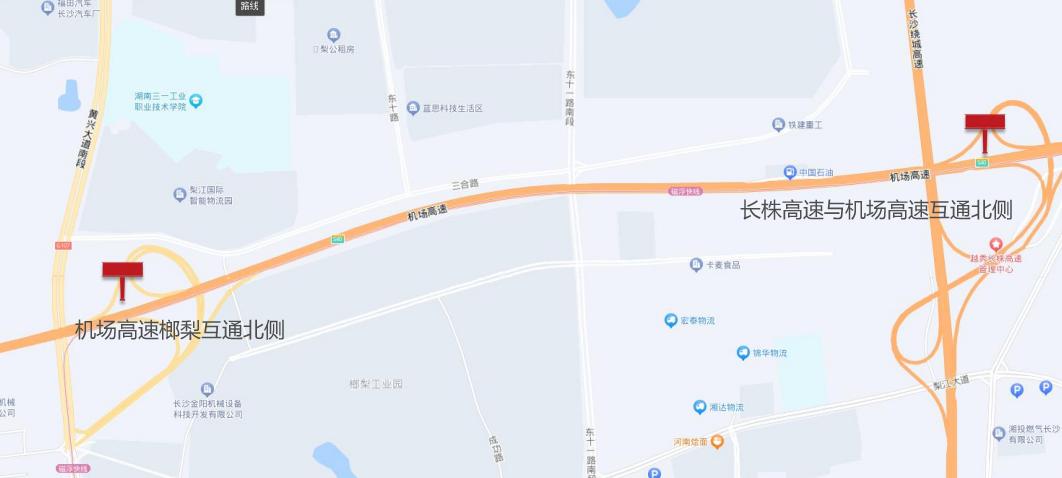 長株高速與機(jī)場高速互通北側(cè) |